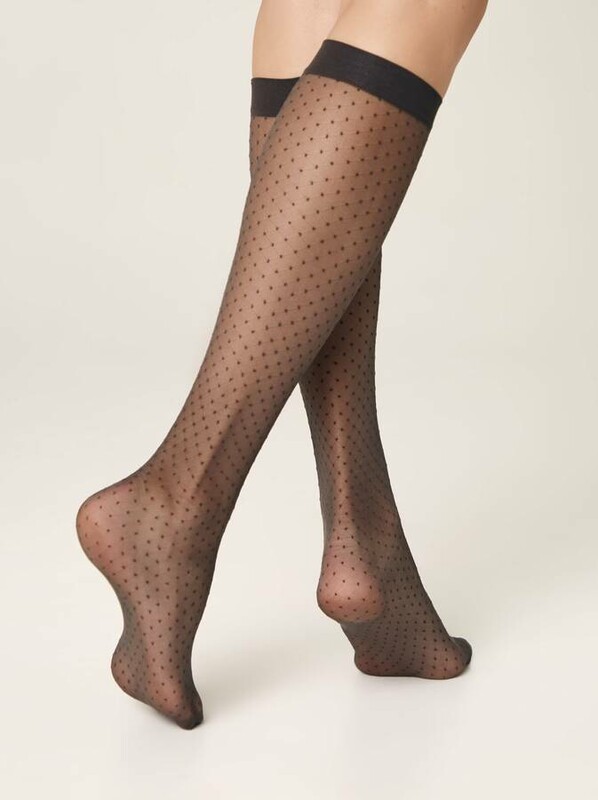 Тонкие эластичные гольфы Perla станут стильной альтернативой классическим однотонным моделям. Элегантный и ненавязчивый геометрический рисунок «точки» будет уместным в офисных, повседневных и вечерних образах. • 20 den • тонкие и эластичные • геометрический рисунок «точки» • однородные по всей длине • без пятки • с бортом • созданы для стильных сияющих образов. полиамид 90%, эластан 10%