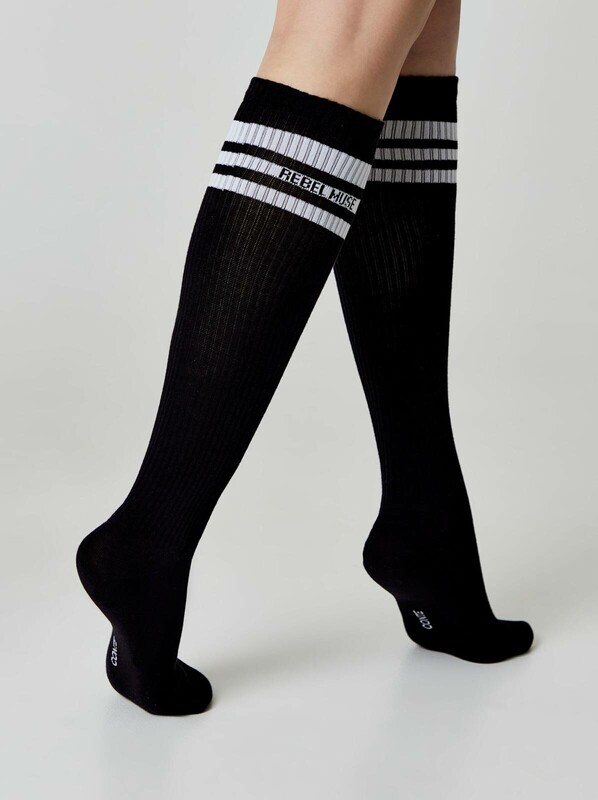 Спортивные гольфы из хлопка мягкие, тактильно приятные, плотно облегают ногу и не сползают благодаря продуманной конструкции: весь паголенок (от пятки до верхнего края) связан с добавлением нитей эластана, формирующих резинку.
