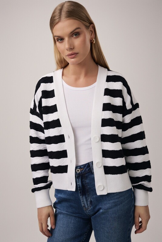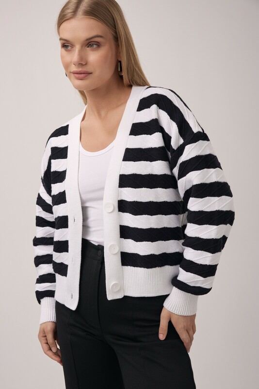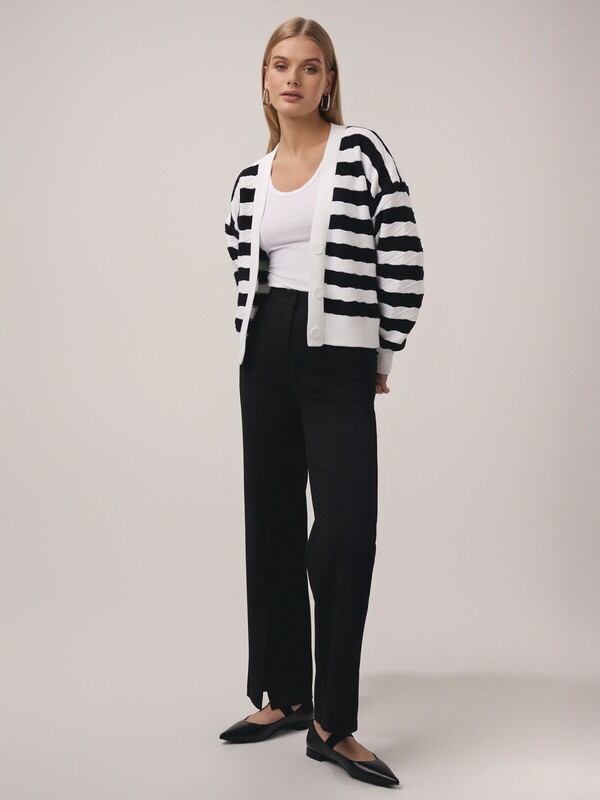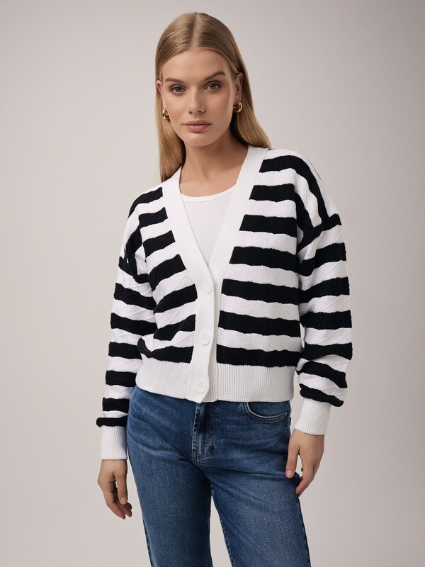 "Рассматриваем кардиган на пуговицах как универсальный предмет гардероба, который никогда не будет лишним. Сочетайте эту модель с платьями, юбками, брюками и джинсами.