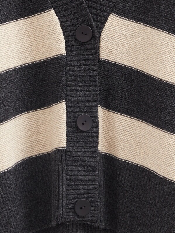 "Жакет объемного силуэта из пряжи с шерстью станет незаменимой вещью в базовом гардеробе, с моделью легко создавать лаконичные и стильные образы на каждый день. В нём вам будет очень уютно и тепло.