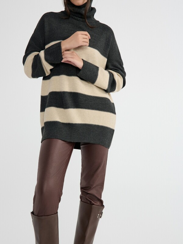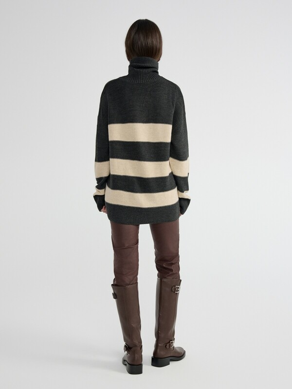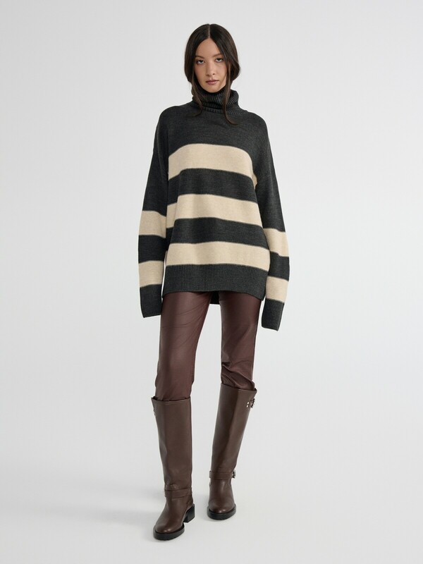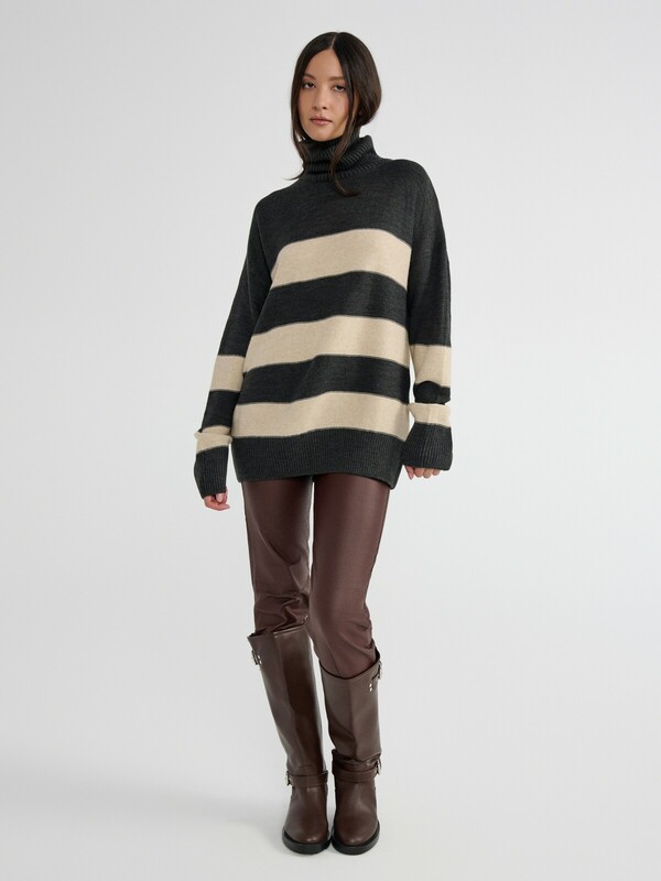 "Элегантность и комфорт джемпера объемного силуэта с отложным воротом-стойкой поможет вам чувствоваться себя уютно везде: прогуливаясь в парке, на встрече с друзьями или на работе. Модель отлично сочетается с джинсами, брюками и юбками-midi.