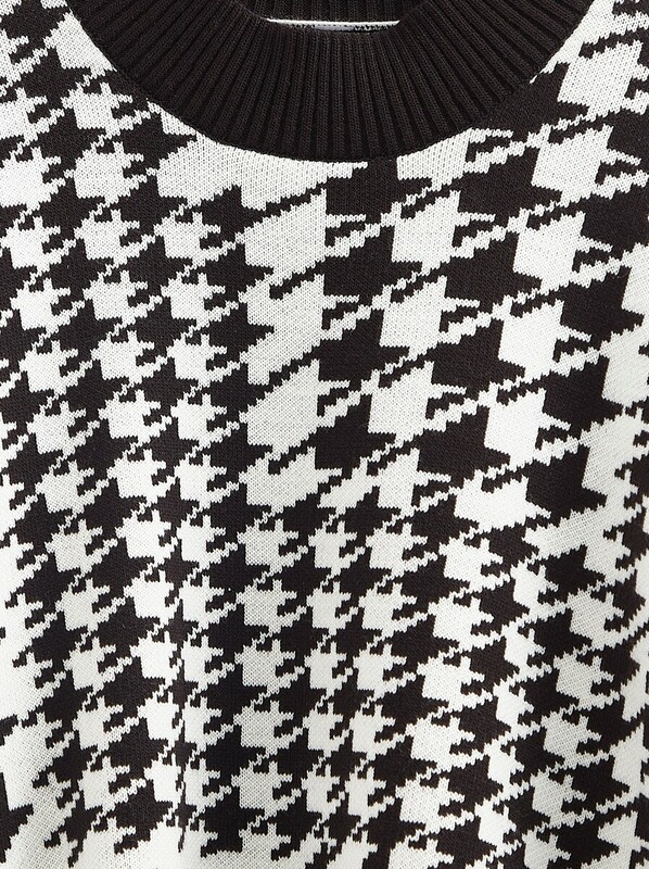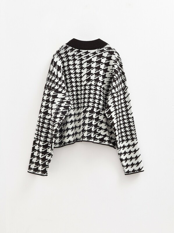 "Джемпер объемного силуэта с жаккардовым переплетением сочетается практически со всеми вещами из вашего гардероба, начиная от расслабленного денима и заканчивая деловыми брюками.