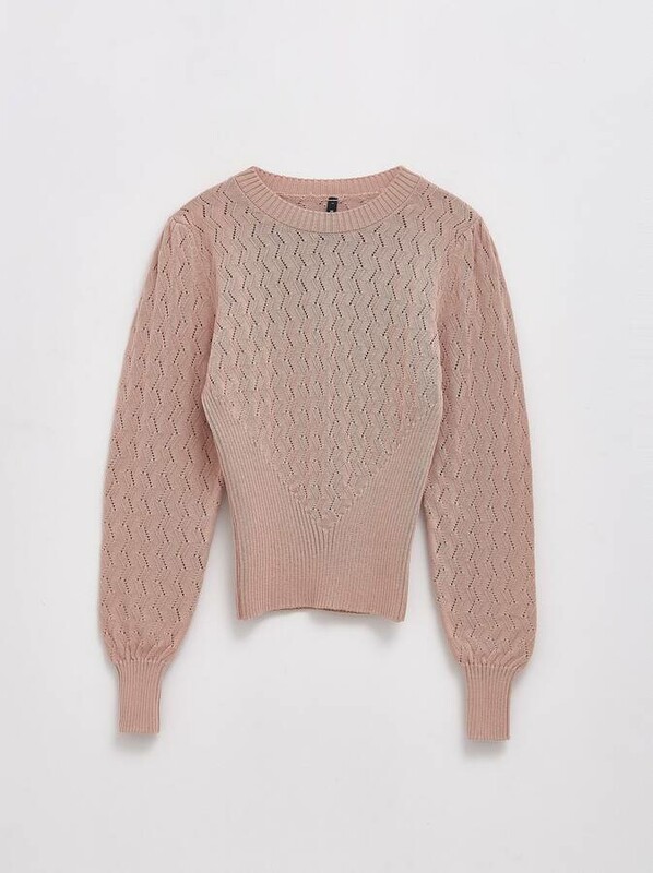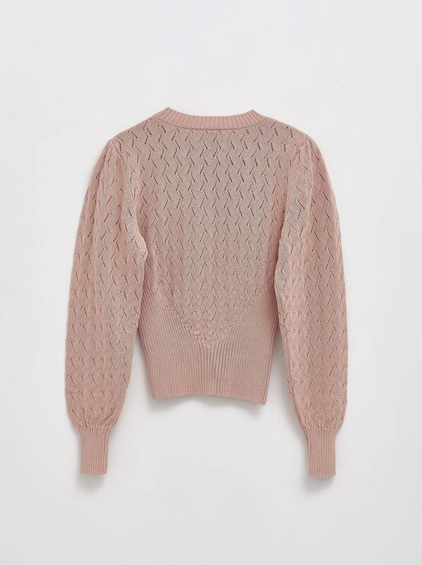 Джемпер с ажурным узором из пряжи с хлопком – это комфортная модель для индивидуальных повседневных образов. PREMIUM COTTON: хлопок премиального качества мягкий, приятный к телу и «дышащий». · круглый вырез горловины· прилегающий силуэт· длинные втачные рукава с ажурным узором· сборки по откату рукава· ажурный узор по переду и спинке · широкая V-образная манжета в рубчик по талии· пряжа премиального качества с хлопком· стиль начинается с комфорта и индивидуальности.