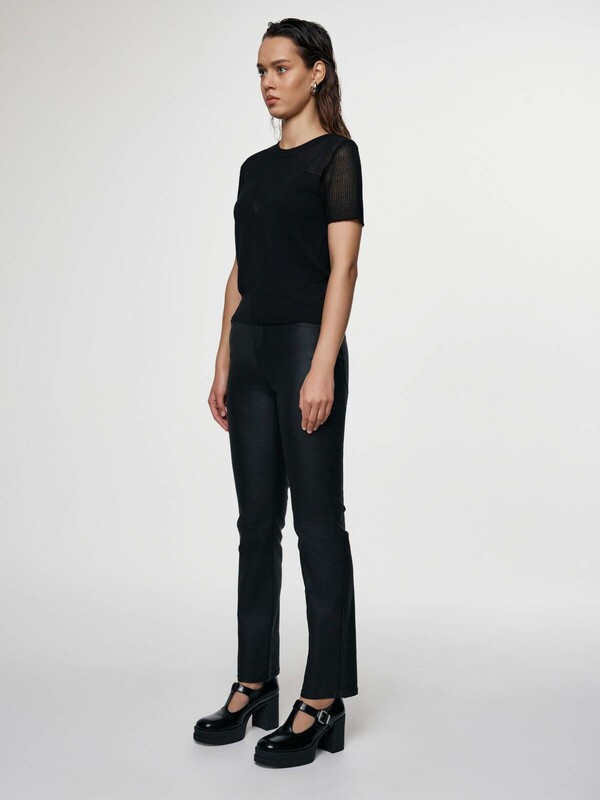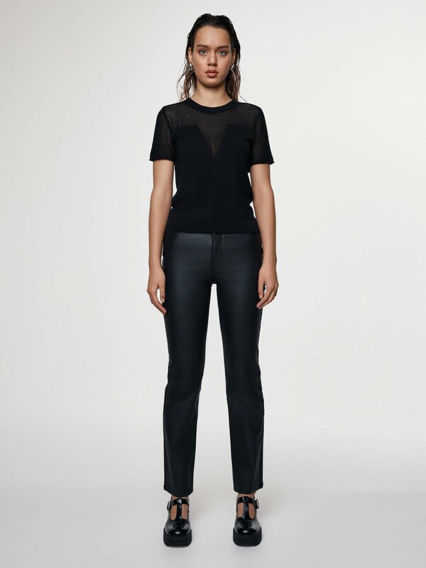 Джемпер прямого силуэта связан из тонкой шелковистой пряжи на основе вискозы красивым сочетанием ажурного переплетения и кулирной глади. Модель поможет подчеркнуть индивидуальность и сделает повседневный образ элегантным. · круглый вырез горловины· классическая линия плеч· короткие втачные рукава· прямой силуэт· гладкая и приятная к телу пряжа с вискозой· сочетание двух переплетений: ажурного и кулирной глади· сохранение формы и цвета при соблюдении рекомендаций по уходу· лаконично, женственно и элегантно· создайте total-look, используя юбку LDK 2322. viscoza 50%, poliacrilonitril 50%