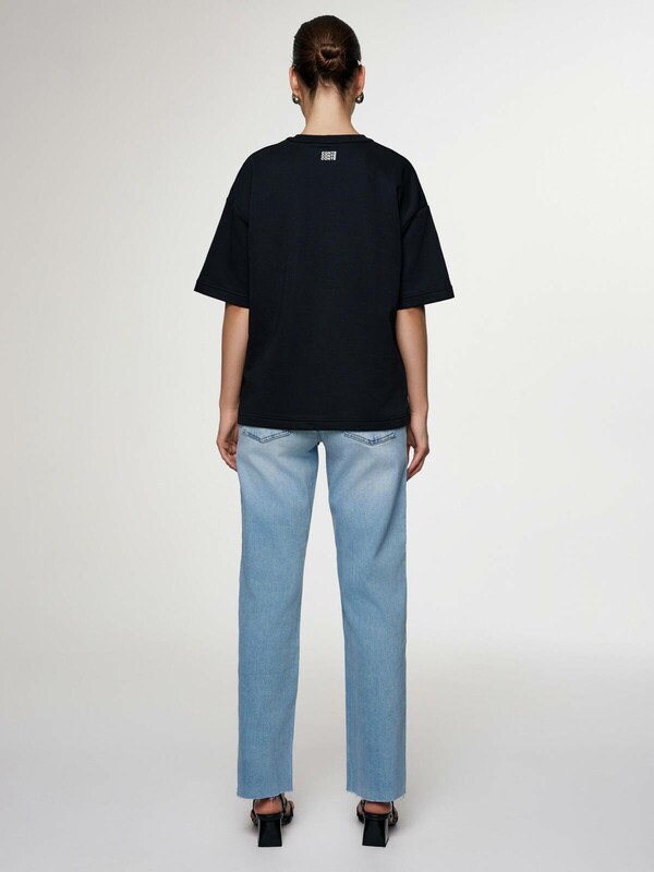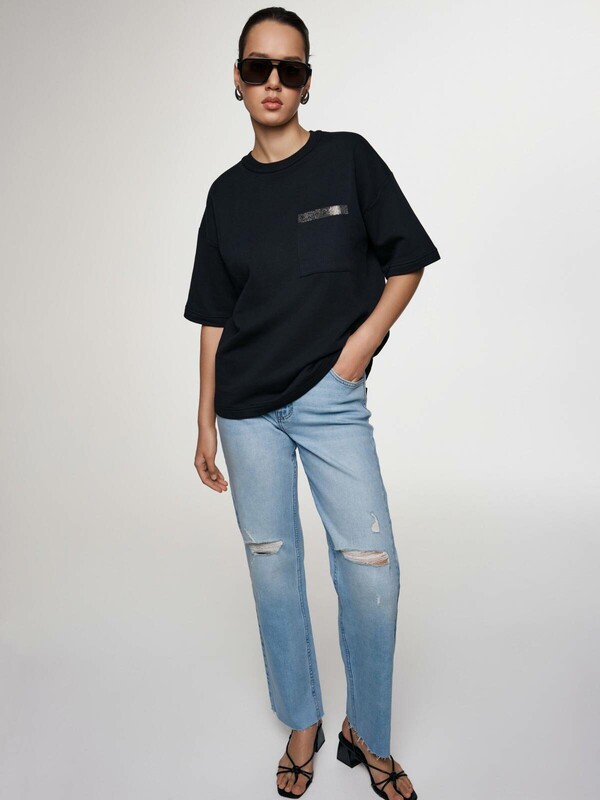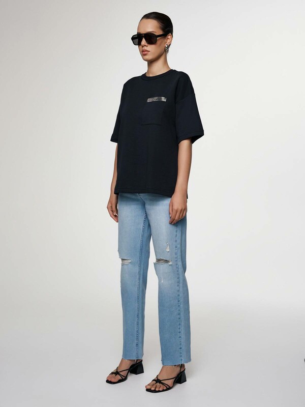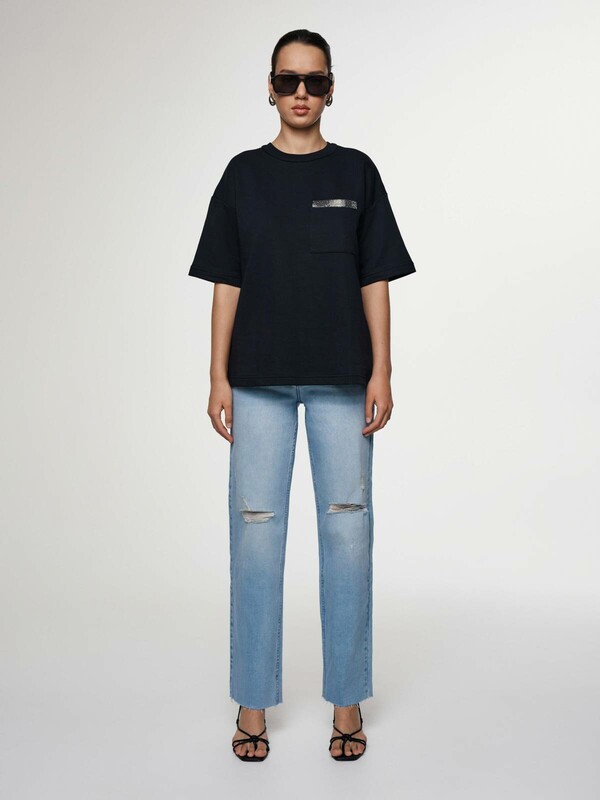 Джинсы straight подойдут девушкам с разными типами фигуры: благодаря высокой посадке, прилеганию в области бедер и прямому крою штанин модель отлично подчеркивает силуэт. Стильные эффекты разрушения, рваные участки в области колен и необработанный край помогут создать актуальные повседневные образы в непринужденном стиле.