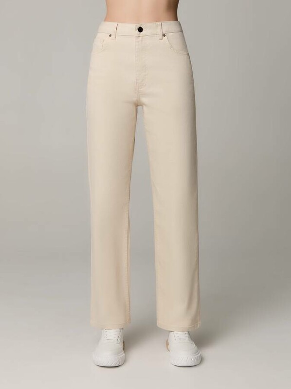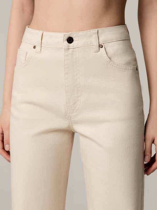 Джинсы брючного кроя из денима с меланжевым эффектом. Подойдут девушкам с разными типами фигуры благодаря высокой посадке, прилегающему крою в области бедер. Модель отлично подчеркивает силуэт. Eco-friendly: при изготовлении этих джинсов применяются технологии, позволяющие использовать меньше химикатов, воды и электроэнергии, чем при производстве традиционного денима.