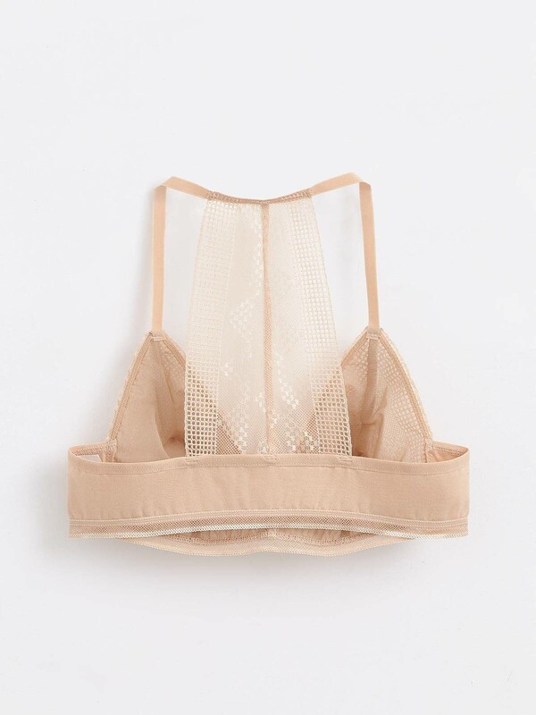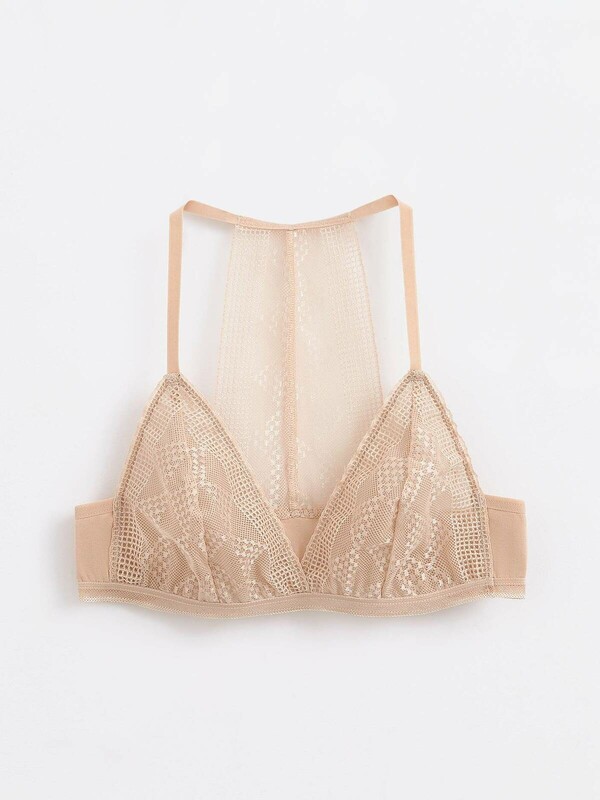 • мягкие треугольные чашки из сетки с кружевом