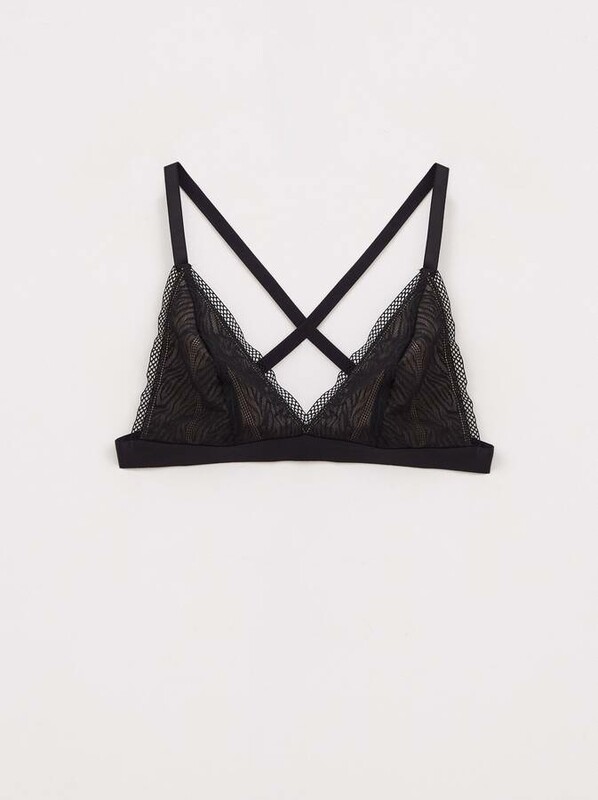 Трендовое анималистичное кружево на подкладке из мягкой эластичной сетки, глубокая V-образная линия декольте, широкая эластичная лента в стиле спорт-шик – в серии Zebra объединились самые актуальные бельевые тренды, чтобы вы каждый день чувствовали комфорт и уверенность в себе. · без каркасов· глубокая V-образная линия декольте· мягкие треугольные чашки из кружева на подкладке · тонкие бретели из эластичной тесьмы, переходящие в крест-накрест по спинке· широкая эластичная лента под грудью · трендовое анималистичное кружево на подкладке из мягкой эластичной сетки· сохранение формы и цвета при соблюдении рекомендаций по уходу· создано для вашего комфорта и уверенности в себе.