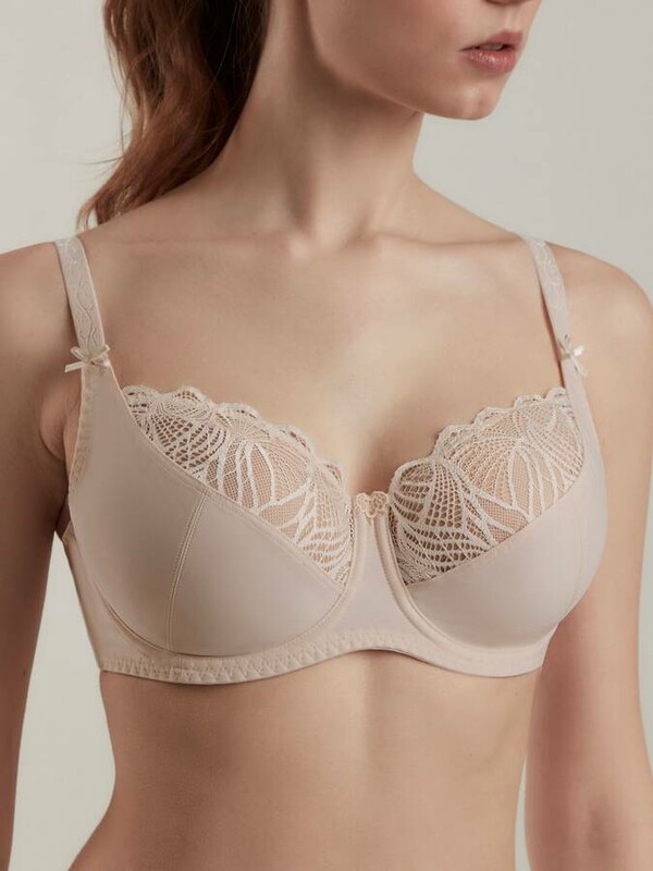 Классическая серия белья Aura создана из неэластичного функционального трикотажа и кружева с растительным рисунком. Белье эффектно подчеркивает женственные линии и гарантирует безупречную поддержку, необходимую для обладательниц пышных форм.