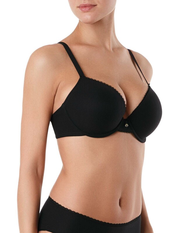 Бюстгальтер push-up WEEKEND выполнен из эластичного полотна в полоску с использованием ажурной тесьмы и элегантной подвески в качестве отделки. Преимущества модели: