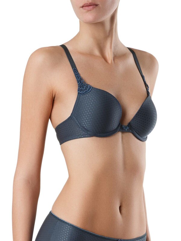 Бюстгальтер серии VOYAGE отличается чистотой линий и исключительным комфортом. Выполненный из полотна с деликатным жаккардовым рисунком «в горошек» и украшенный аппликациями макраме, бюстгальтер поможет создать одновременно простой и утонченный образ. Преимущества модели:- формованная чашка push-up, на каркасах;- вышитые аппликации макраме. - абсолютный комфорт на протяжении всего дня.