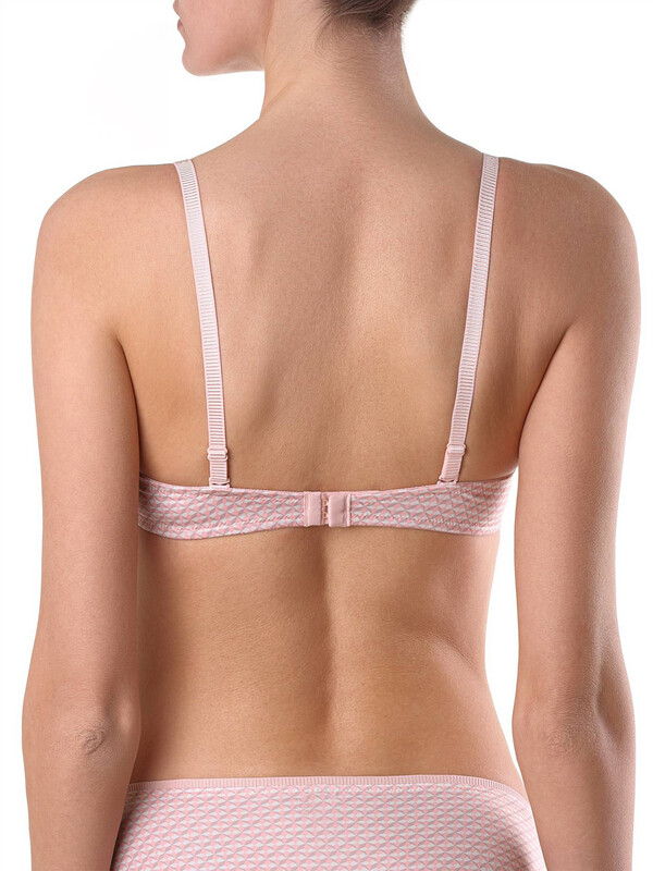 Бюстгальтер серии MOSAIQUE выполнен из набивного полотна с графическим рисунком и шелковистой поверхностью. Лаконичные конструкции моделей делают бюстгальтер универсальной моделью для базового бельевого гардероба. Контрастные бантики и тесьмы поддерживают дизайн. Преимущества модели:- формованная чашка push-up, на каркасах;- боковые детали стана на подкладке;- бретели, отстегивающиеся на спинке.