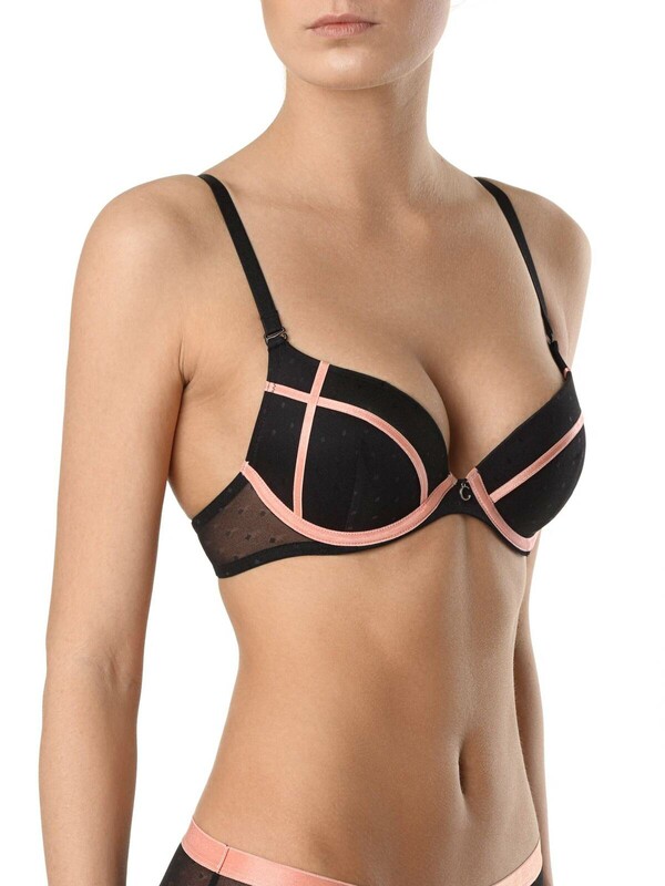 Бюстгальтер серии Galaxy – это легкое жаккардовое полотно в мелкую сеточку с рисунком, напоминающим россыпь звезд в небе, лаконичные тесьмы с атласным блеском и безупречная посадка по фигуре. Преимущества модели:- формованная чашка push-up, на каркасах;- полностью съемные бретели;- элегантная металлическая подвеска в виде буквы «С».