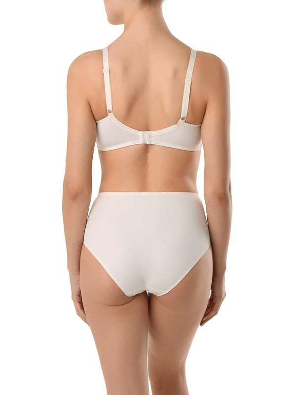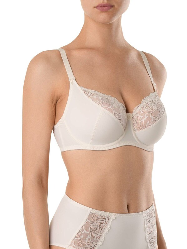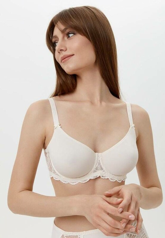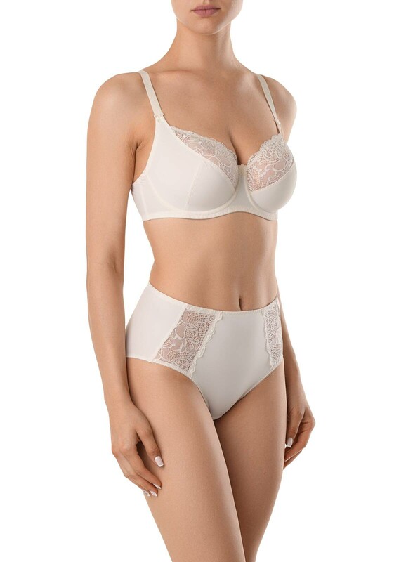Классическая серия белья Aura создана из неэластичного функционального трикотажа и кружева с растительным рисунком. Белье эффектно подчеркивает женственные линии и гарантирует безупречную поддержку, необходимую для обладательниц пышных форм. В модели используется технология формования чашек, которая предполагает выдавливание формы при высокой температуре, благодаря чему отсутствуют швы на чашках, поэтому такие чашки будут незаметны под одеждой.