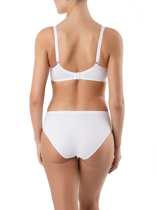 Классическая серия белья Aura создана из неэластичного функционального трикотажа и кружева с растительным рисунком. Белье эффектно подчеркивает женственные линии и гарантирует безупречную поддержку, необходимую для обладательниц пышных форм. В модели используется технология формования чашек, которая предполагает выдавливание формы при высокой температуре, благодаря чему отсутствуют швы на чашках, поэтому такие чашки будут незаметны под одеждой.