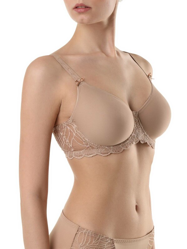 Классическая серия белья Aura создана из неэластичного функционального трикотажа и кружева с растительным рисунком. Белье эффектно подчеркивает женственные линии и гарантирует безупречную поддержку, необходимую для обладательниц пышных форм. В модели используется технология формования чашек, которая предполагает выдавливание формы при высокой температуре, благодаря чему отсутствуют швы на чашках, поэтому такие чашки будут незаметны под одеждой.