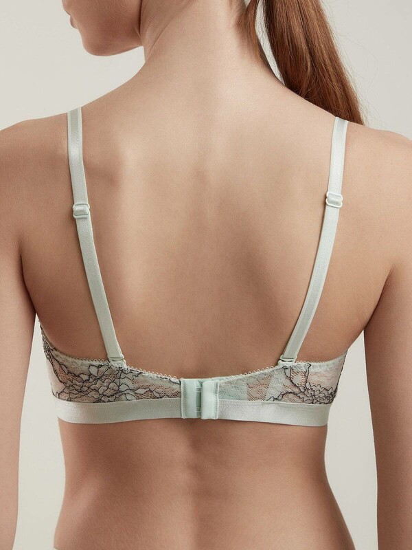 Цветочное кружево, подчеркнутое контрастной рельефной нитью, нежнейшие оттенки мяты и розы, тесьма в спортивном стиле – белье Fusion создано для свежих и слегка провокационных бельевых образов. • чашка на дубляже с хлопком • без каркасов • упругие пластины в боковых деталях стана • тонкие регулируемые бретели, отстегивающиеся по спинке • цветочное кружево, подчеркнутое контрастной рельефной нитью • тесьма в спортивном стиле с легким атласным блеском • создан для свежих и слегка провокационных бельевых образов. полиамид 44%, хлопок 29%, полиэстер 16%, эластан 11%