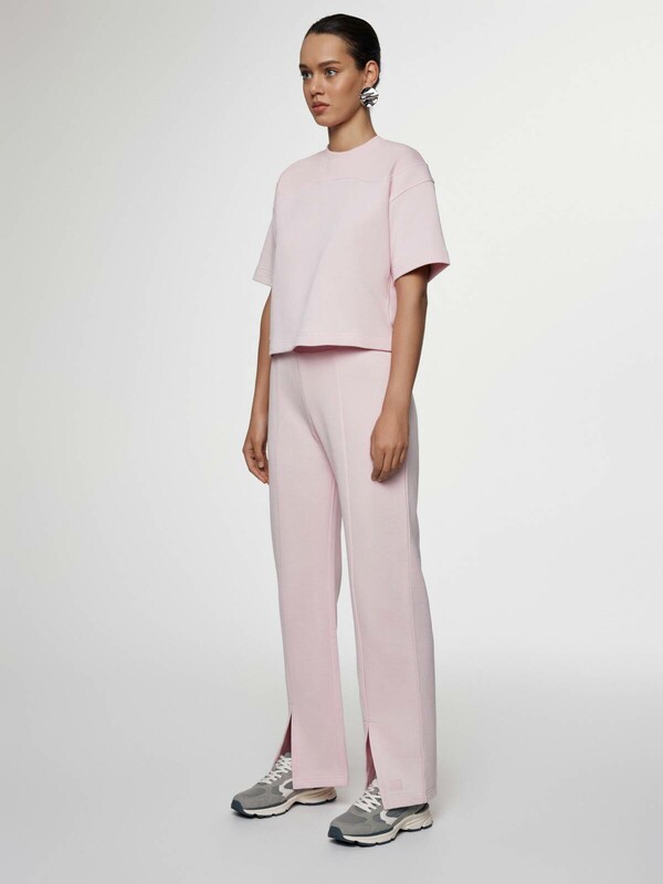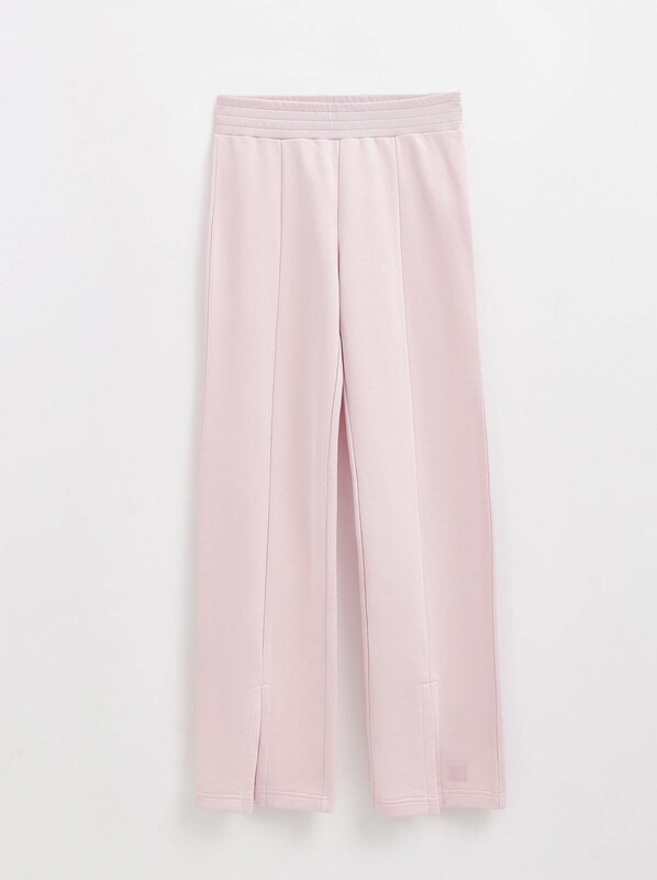 Брюки из футера с рельефными швами и разрезами станут основой для множества расслабленных повседневных образов. • высокая посадка • прямой крой • притачной пояс с эластичной тесьмой внутри • рельефные швы с разрезами по низу • мягкий и приятный к телу футер без начеса • спереди - лаконичная печать с логотипом бренда • сохранение формы и цвета при соблюдении рекомендаций по уходу • безупречный стиль и абсолютная свобода в движениях • стильная основа для расслабленных повседневных образов. bumbac 83%, poliester 17%