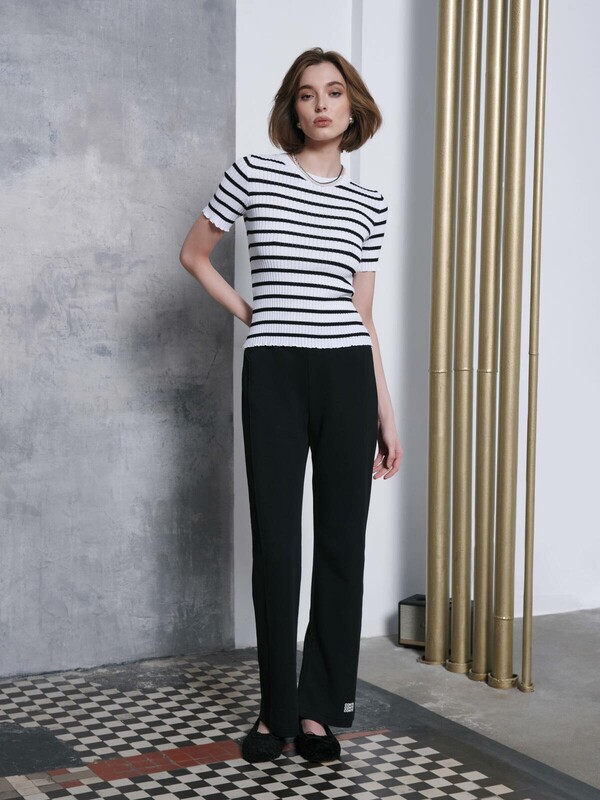 Брюки с высокой посадкой и боковыми вставками из фактурного полотна в рубчик станут основой для множества расслабленных повседневных образов. • высокая посадка • прямой крой • притачной пояс с эластичной тесьмой внутри • боковые вставки из фактурного полотна в рубчик • мягкий и приятный к телу футер без начеса • спереди - лаконичная печать с логотипом бренда • сохранение формы и цвета при соблюдении рекомендаций по уходу • безупречный стиль и абсолютная свобода в движениях • стильная основа для расслабленных повседневных образов. bumbac 83%, poliester 17%