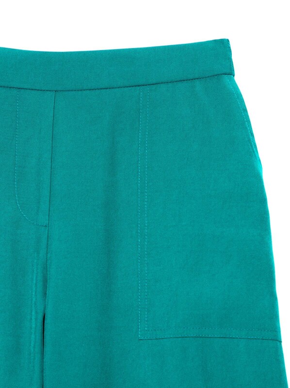 Слегка укороченные брюки вискозы с эффектом "прикосновение вельвета" легкие, свободно струящиеся по фигуре, поэтому в них будет комфортно даже в жаркий летний день. Брюки прекрасно сидят по фигуре и отлично сочетаются с любым верхом: топом, футболкой, блузкой. VELVET TOUCH VISCOSE: деликатная, ультрамягкая вискоза с ненавязчивым блеском на ощупь напоминает вельвет. Полотно с вискозой с эффектом «прикосновение вельвета» хорошо держит форму и практически не мнется. · высокая посадка· притачной пояс с эластичной тесьмой по спинке· легкое струящееся полотно· вискоза премиального качества «Прикосновение вельвета»· функциональные накладные карманы по бокам· сохранение формы и цвета при соблюдении рекомендаций по уходу· то, что нужно для свежего летнего образа. вискоза 90%, полиэстер 10%