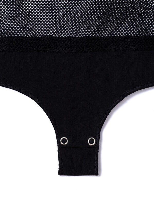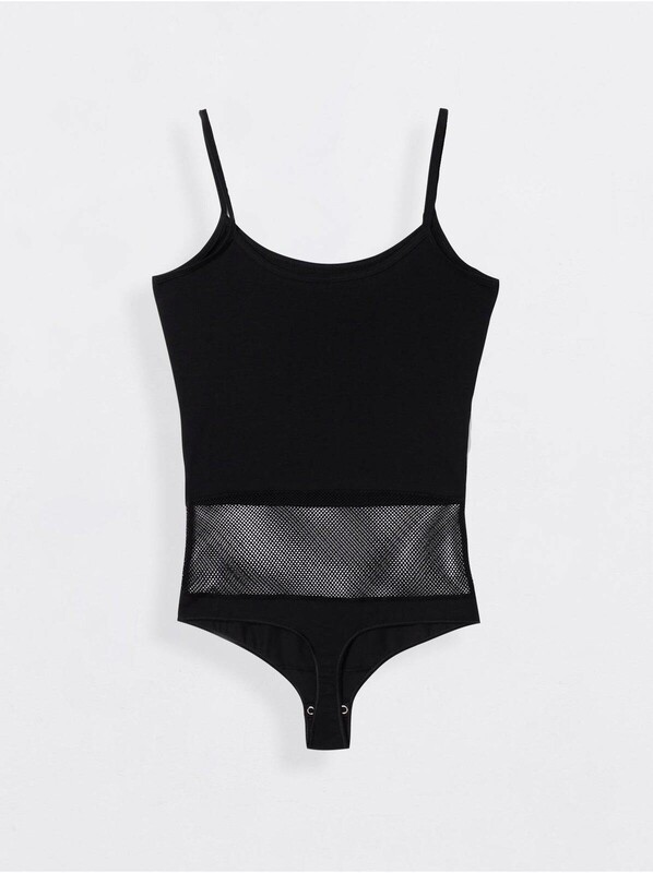 Стильное боди с тонкими бретелями выполнено в классических цветах женского бельевого гардероба. Высокое содержание хлопка с добавлением нитей эластана подарит вам легкость на протяжении всего дня и безупречную облегающую посадку по фигуре. Вы оцените оригинальную вставку из трендового отделочного полотна "сетка".