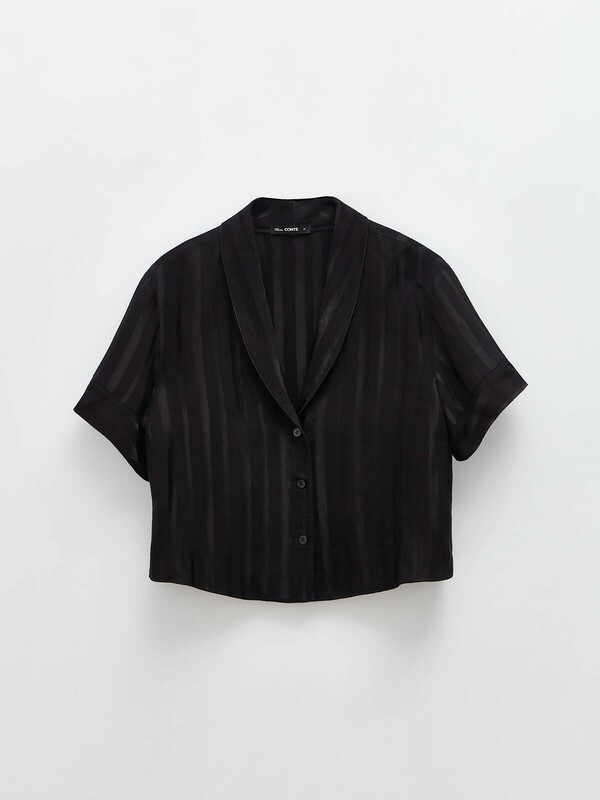 Укороченная домашняя блуза с атласными полосами LHW 1707 – эффектный и при этом комфортный вариант для стильного домашнего гардероба. SILK TOUCH VISCOSE: премиальная вискоза с эффектом «ощущение шелка» подарит мягкость и комфорт на протяжении всего дня. · V-образный вырез горловины· отложной воротник· короткие втачные рукава с манжетой по низу· центральная застежка на петли и пуговицы· умеренно свободный крой· укороченная модель· вискоза премиального качества · полотно с атласными вертикальными полосами· сохранение формы и цвета при соблюдении рекомендаций по уходу· эффектный и комфортный вариант для стильного домашнего гардероба. вискоза 100%