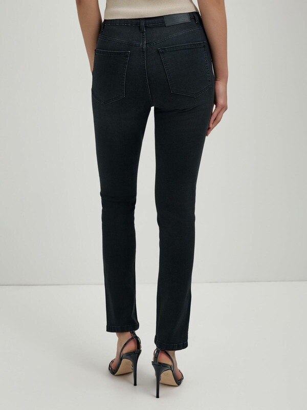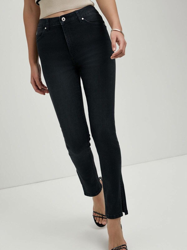 Черные джинсы skinny с высокой посадкой, подчеркивающей талию, и разрезами созданы для адептов комфорта и лаконичности. Модель красиво садится по фигуре и легко сочетается с большинством вещей базового гардероба. Eco-friendly: при изготовлении этих джинсов применяются технологии, позволяющие использовать меньше химикатов, воды и электроэнергии, чем при производстве традиционного денима. • высокая посадка, подчеркивающая талию • skinny • застежка на пуговицу и молнию, скрытую планкой • шлевки для ремня • модель с пятью карманами, на переднем – вышивка логотипа бренда • невысокие акцентные разрезы по низу штанин • мягкий eco-friendly деним премиального качества • для сохранения насыщенности черного цвета соблюдайте рекомендации по уходу • подчеркните фигуру с помощью правильных джинсов.  Рост 164: длина по внутреннему шву 71 см.Рост 170: длина по внутреннему шву 76 см. bumbac 74%, poliester 24.5%, elastan 1.5%