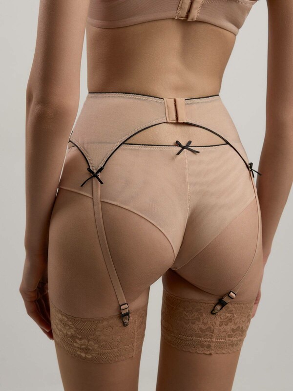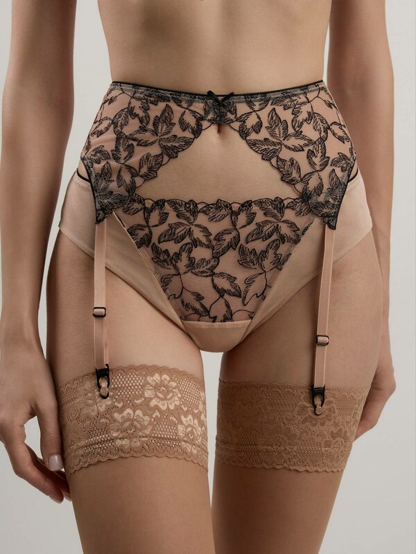 Серия белья Nostalgie выполнена из мягкого сетчатого полотна в оттенке nude и эксклюзивной авторской вышивки, созданной дизайнерами Conte. Благодаря такому решению нежная сетка словно исчезает на теле, оставляя только воздушный рисунок черного цвета, который выглядит как эскиз изящной татуировки. • пояс для чулок • высокая линия талии • эффект изящных татуировок благодаря авторской вышивке на телесной сетке • регулируемые металлические чулкодержатели • роскошное и соблазнительное дополнение ваших бельевых образов. poliester 49%, poliamida 43%, elastan 8%
