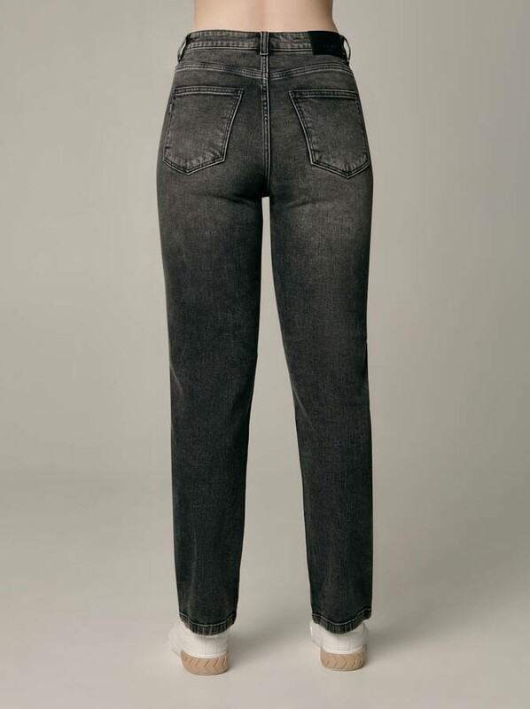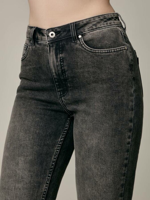 Джинсы с высокой посадкой из плотного, но эластичного денима красиво и комфортно садятся по фигуре, не добавляя силуэту ненужный объем. В процессе оксидной варки деним приобретает особый рисунок, что делает каждые джинсы уникальными.