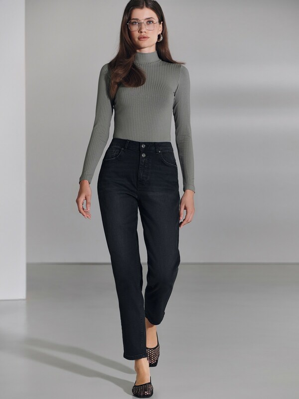 Mom Fit CONTE CON-702 Черные джинсы mom с застежкой на две пуговицы
