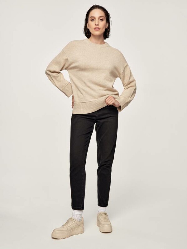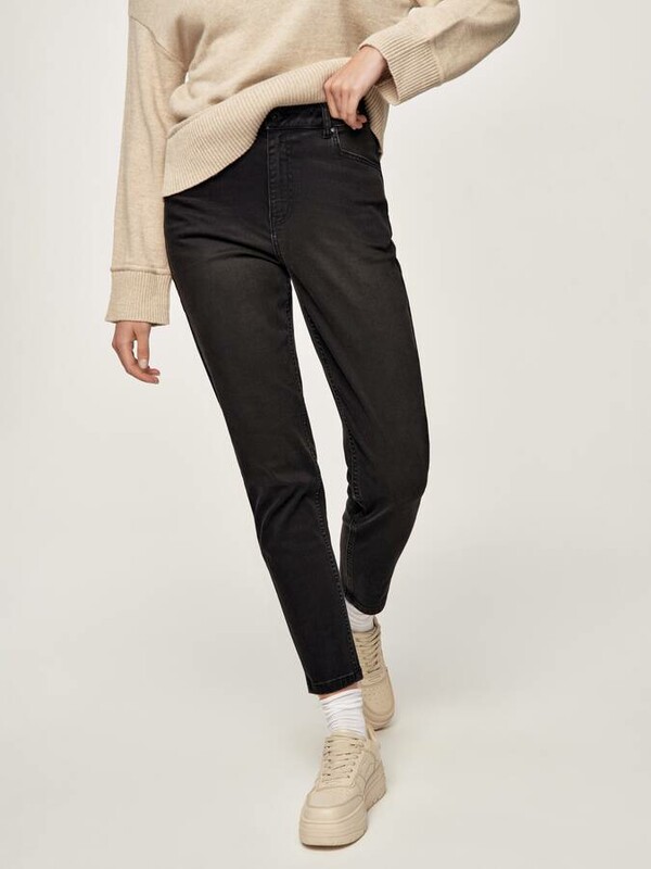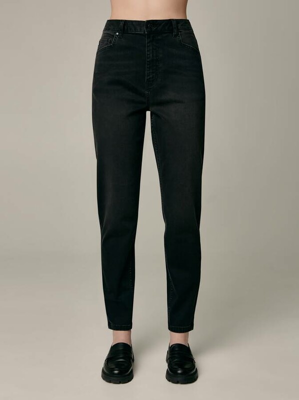 Черные джинсы mom созданы для безупречных повседневных образов: благодаря высокой посадке и умеренно свободному крою модель отлично моделирует силуэт и подчеркивает талию.
