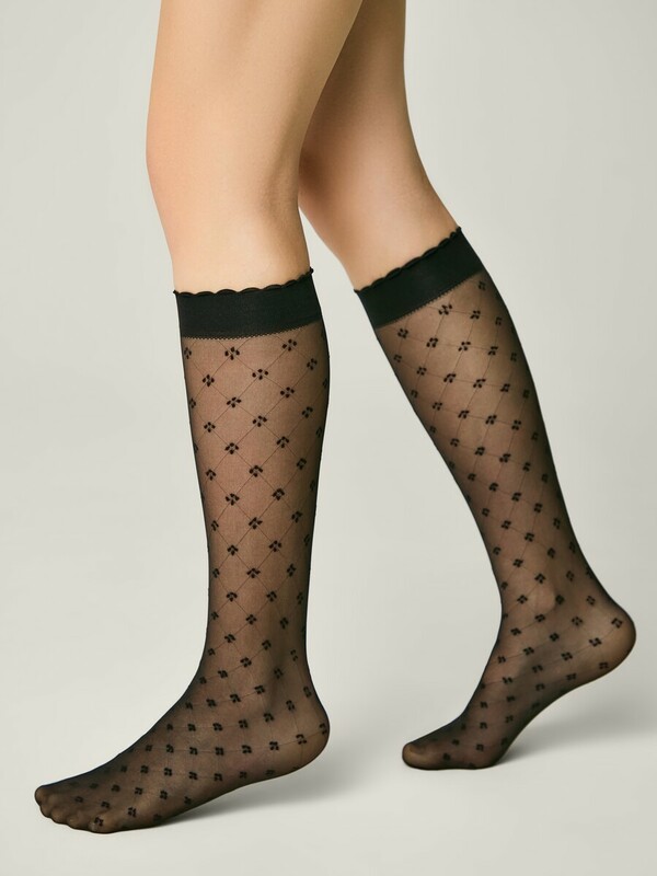 Тонкие гольфы с геометрическим рисунком VIOLA станет прекрасным дополнением юной модницы. Модель поможет создать как нарядный, так и лаконичный образ.