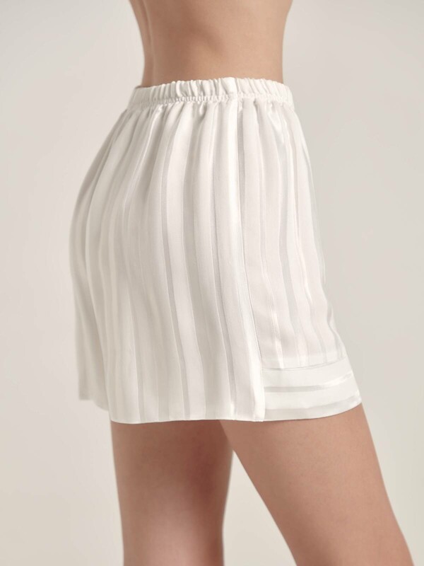 Шорты с отворотами спереди из вискозы с атласными полосами LHW 1706 – эффектный и при этом комфортный вариант для стильного домашнего гардероба. SILK TOUCH VISCOSE: премиальная вискоза с эффектом «ощущение шелка» подарит мягкость и комфорт на протяжении всего дня. · умеренно свободный крой· средняя посадка по талии· эластичный пояс· длина mini· отвороты спереди· вискоза премиального качества · полотно с атласными вертикальными полосами· сохранение формы и цвета при соблюдении рекомендаций по уходу· эффектный и комфортный вариант для стильного домашнего гардероба.