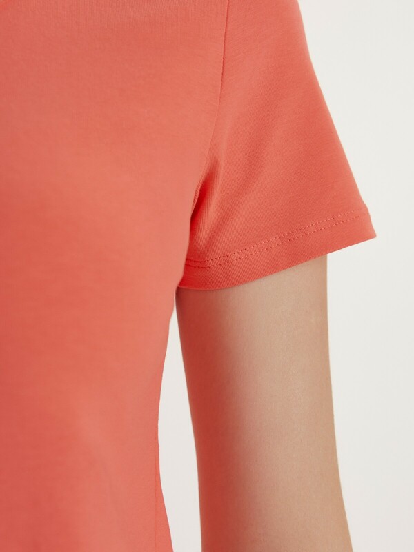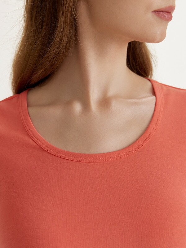Классическая женская Футболка LF 2022 Футболка из нежного хлопка. Идеально облегает фигуру, дарит ощущение комфорта и удобства. У него круглый вырез с отделкой. Он будет идеально сочетаться с юбкой-карандаш или джинсами. Особенности модели: