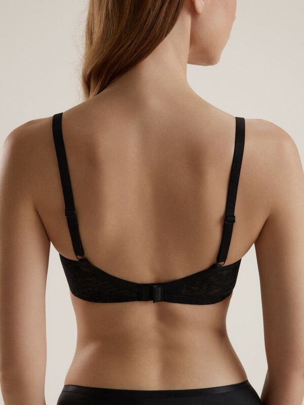 Бельё серии Sunny Rain из эластичного кружевного полотна с абстрактным жаккардовым рисунком, деликатным блеском и утончёнными деталями создаёт гармоничное сочетание комфорта и элегантности. Благодаря формованной чашке с push-up эффектом бюстгальтер придаст дополнительный объем груди и подчеркнёт изящную линию декольте.