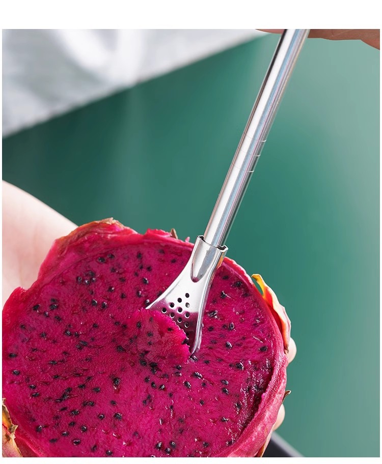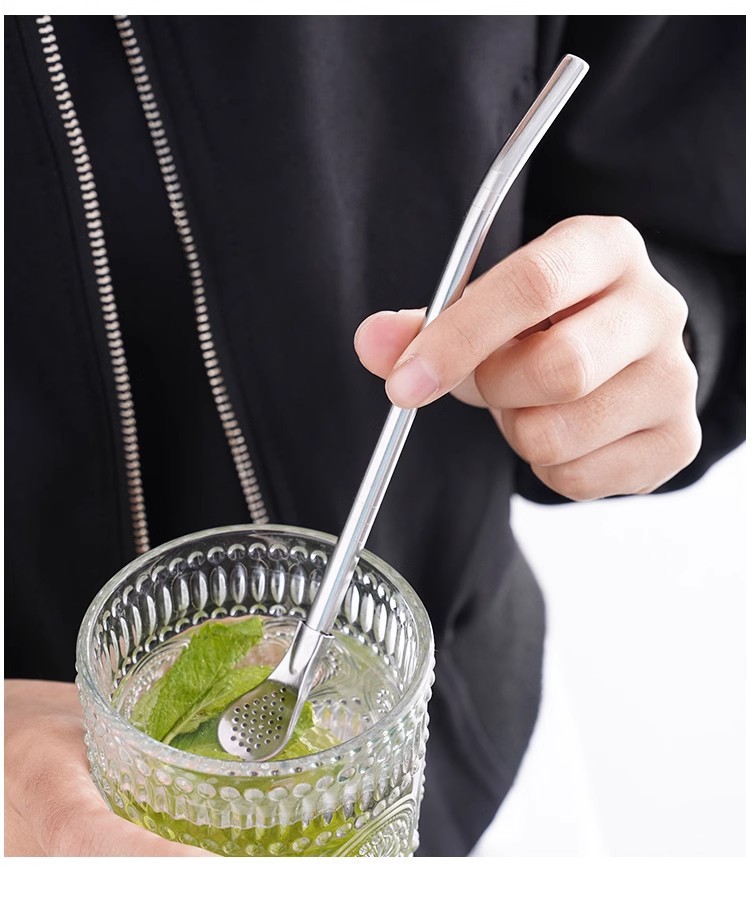 Многоразовая трубочка для коктейлей металлическая. Соломинка с ложкой 9046738