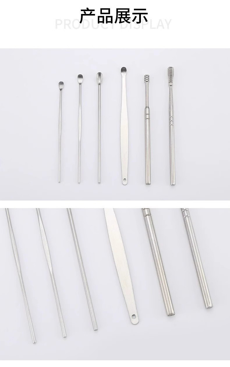 Комплект для чистки ушей с 6 предметов из медицинской углеродистой стали - эффективно удаляет ушную серу.