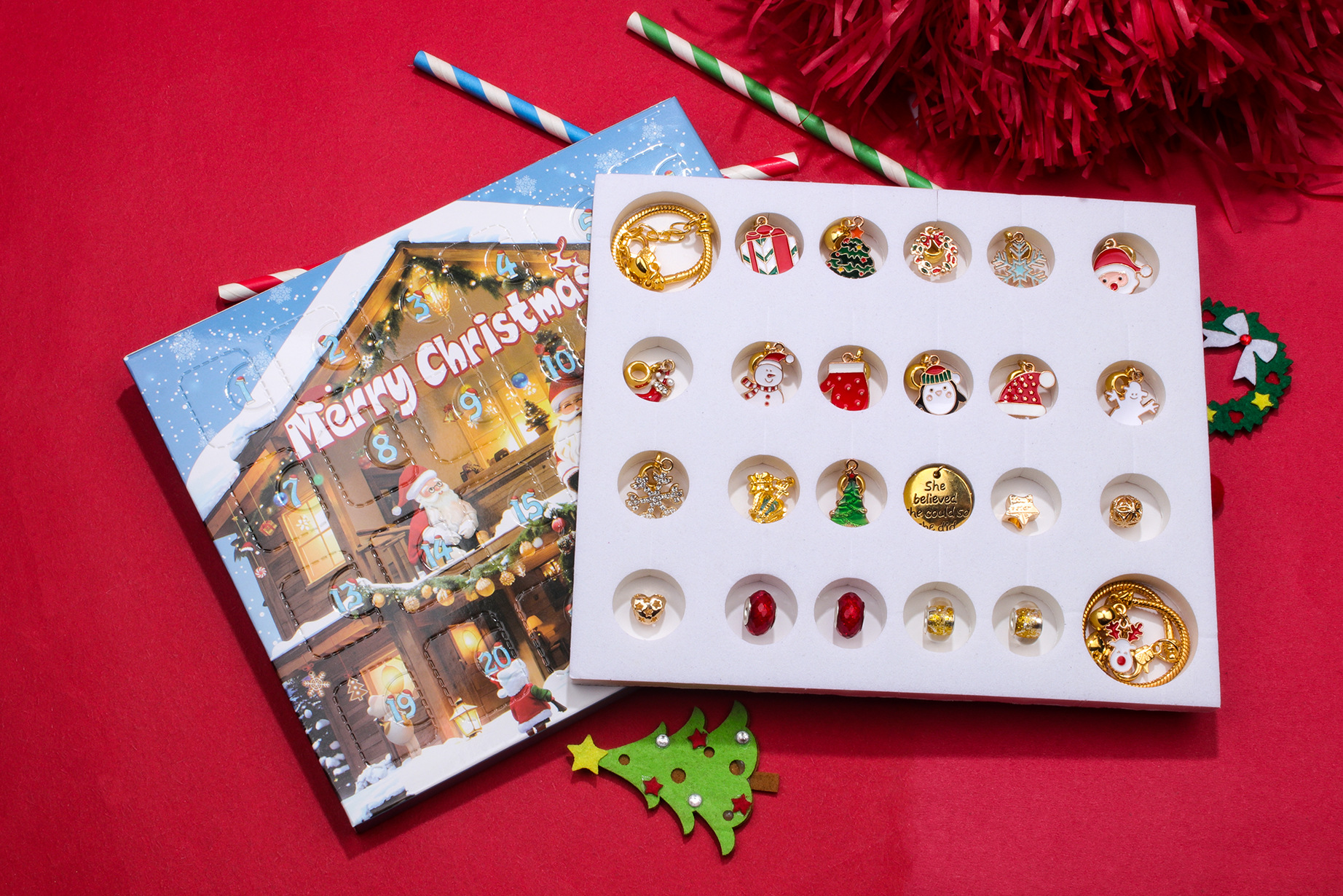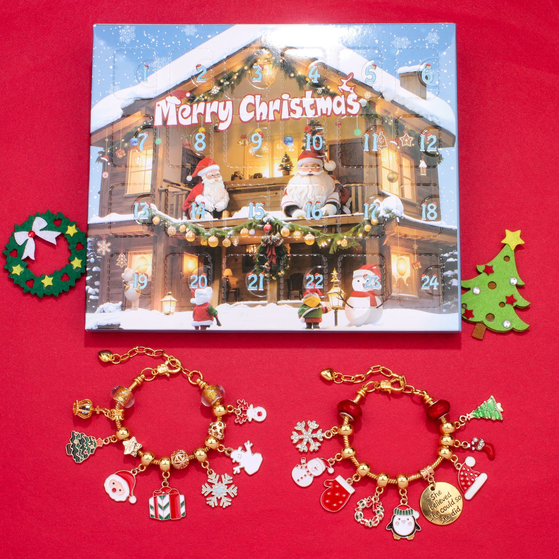 Адвент календарь новогодний "Создай украшение". 2 браслета и шармы, 24 окошка с подарками. 9046674