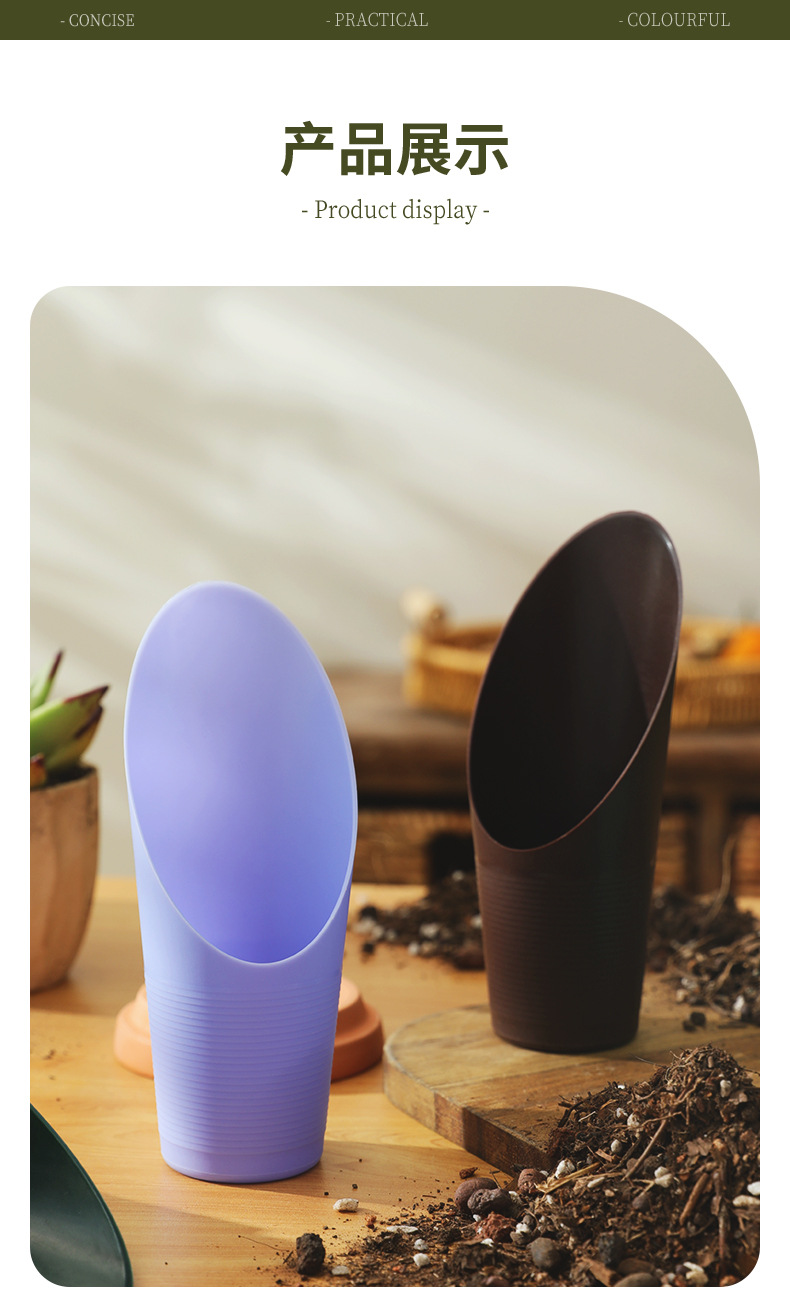 Лёгкий вес и безопасное использование намного лучше металлической лопатки - не царапает горшок и с лёгкостью помещается в руку даже маленького ребёнка. Лопатка с дном обеспечивает комфортное использование, ведь в него удобно набирать песок или грунт с запасом, подсыпать растения в труднодоступных местах, а обратная сторона подходит для утрамбовки грунта. Пластиковый стакан облегчает процесс выращивания растений дома или на огороде - любители растений по достоинству оценит конусный совок, который будет радовать круглогодично.