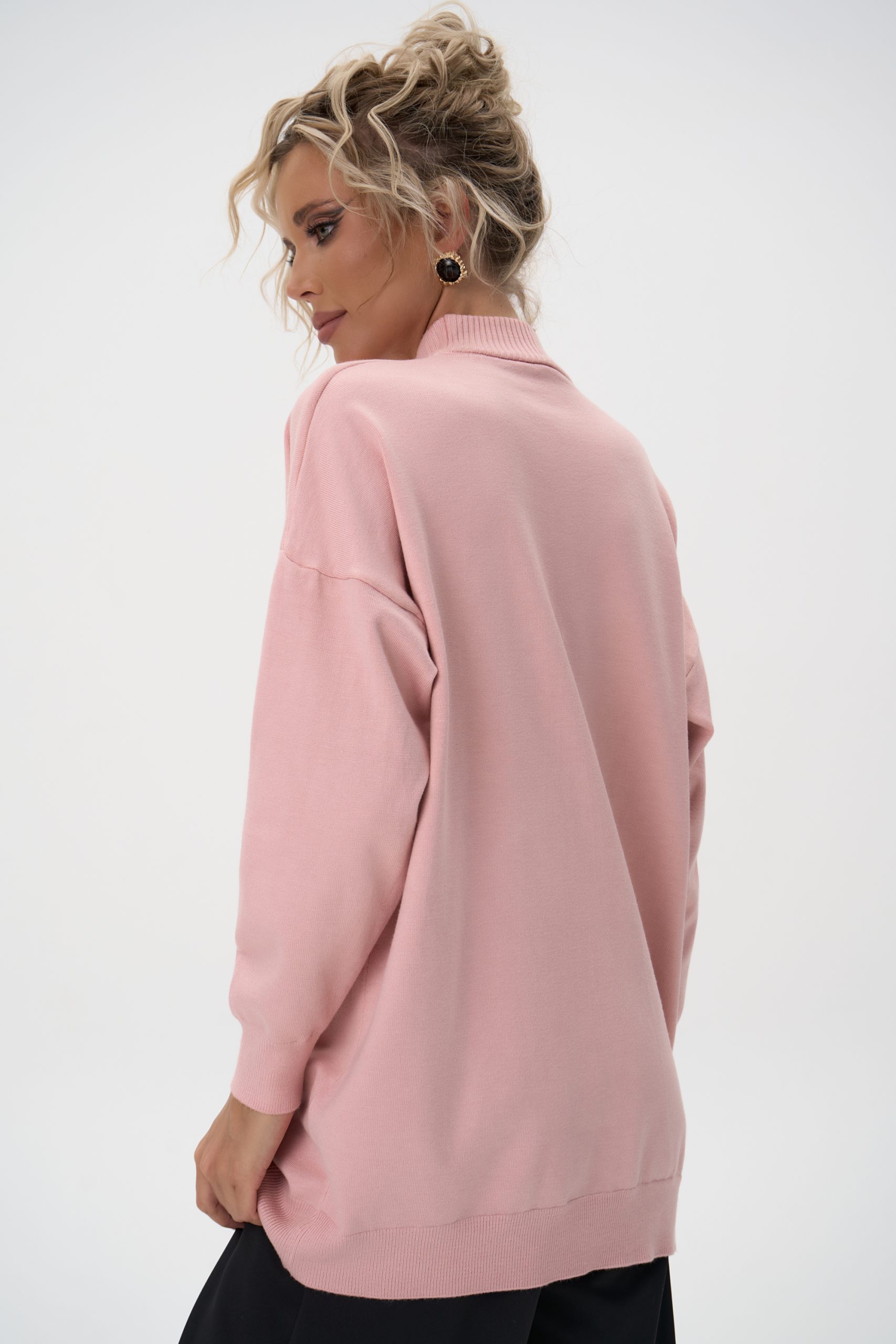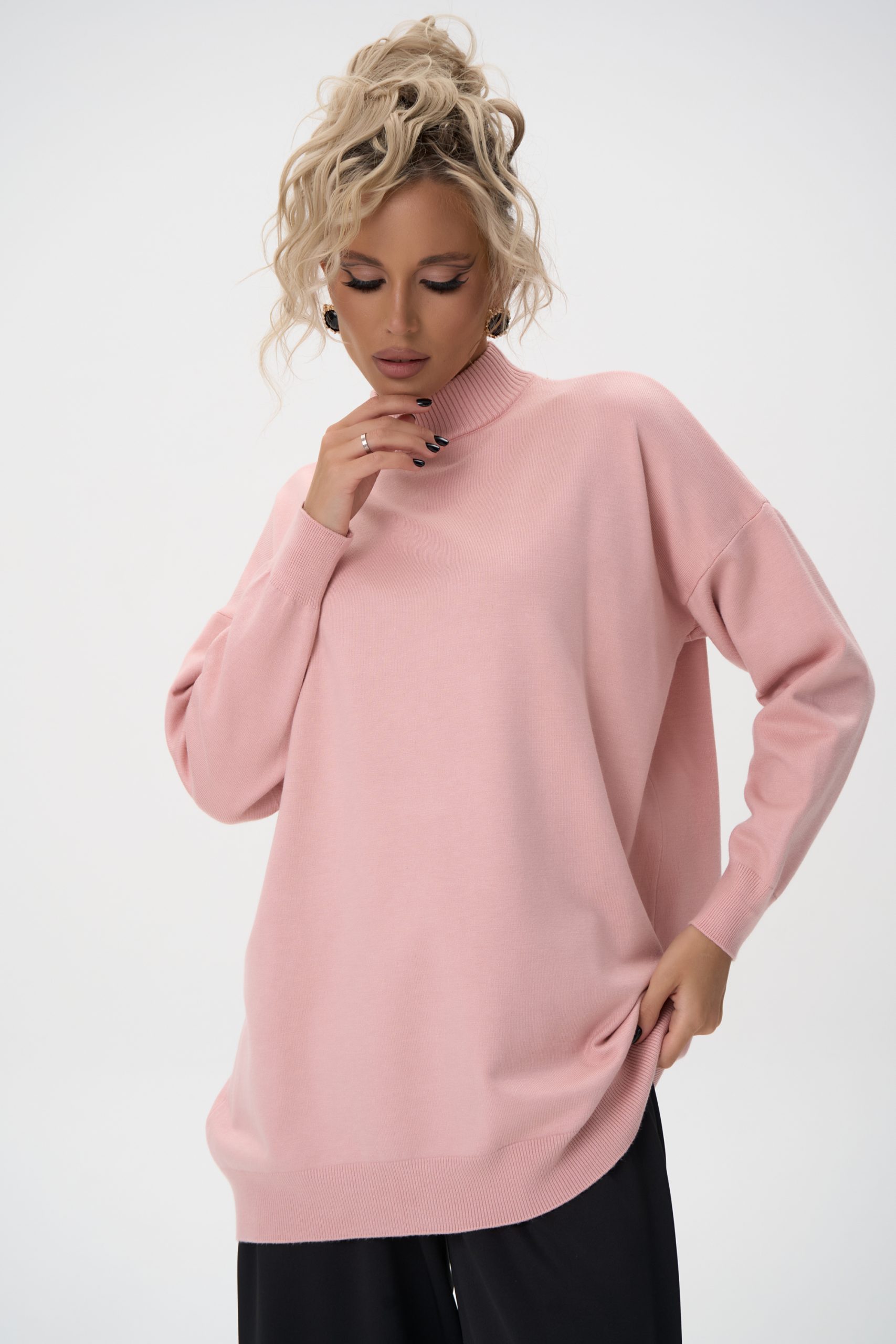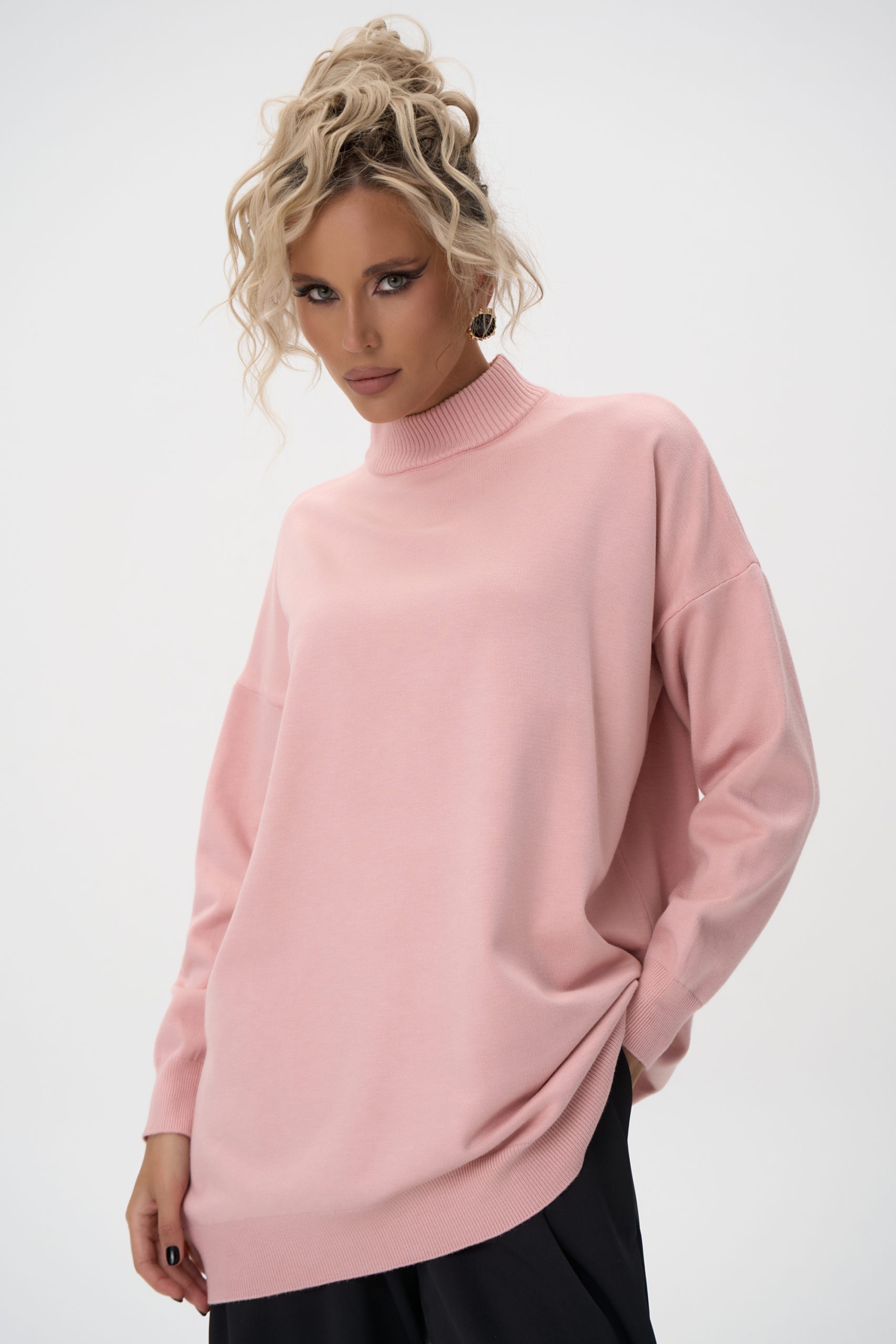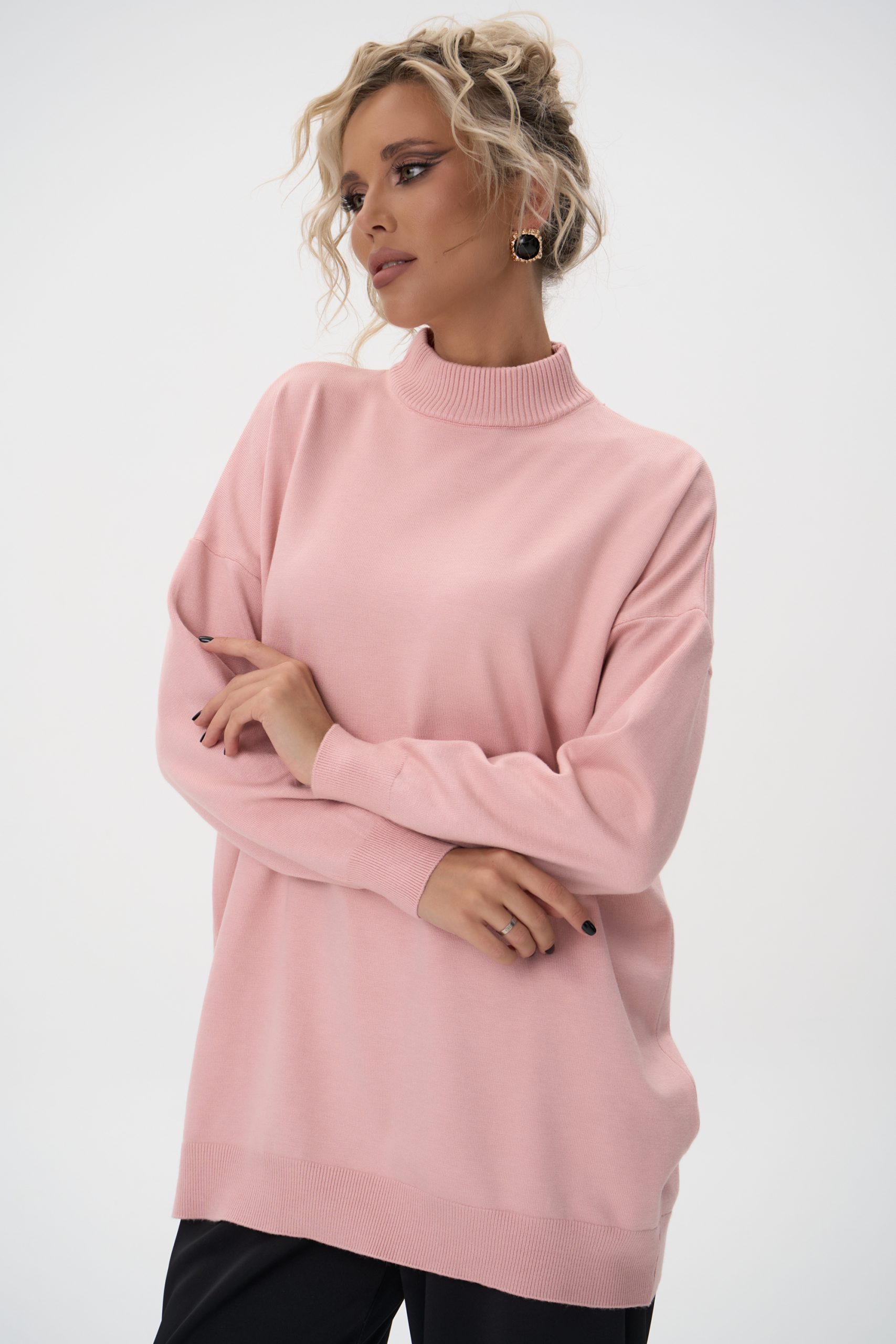 Благодаря свободному силуэту и эластичной фактуре трикотажа, пуловер комфортно садится по фигуре разного типа — подчёркивает линию плеч, не обтягивает и создаёт аккуратный силуэт.