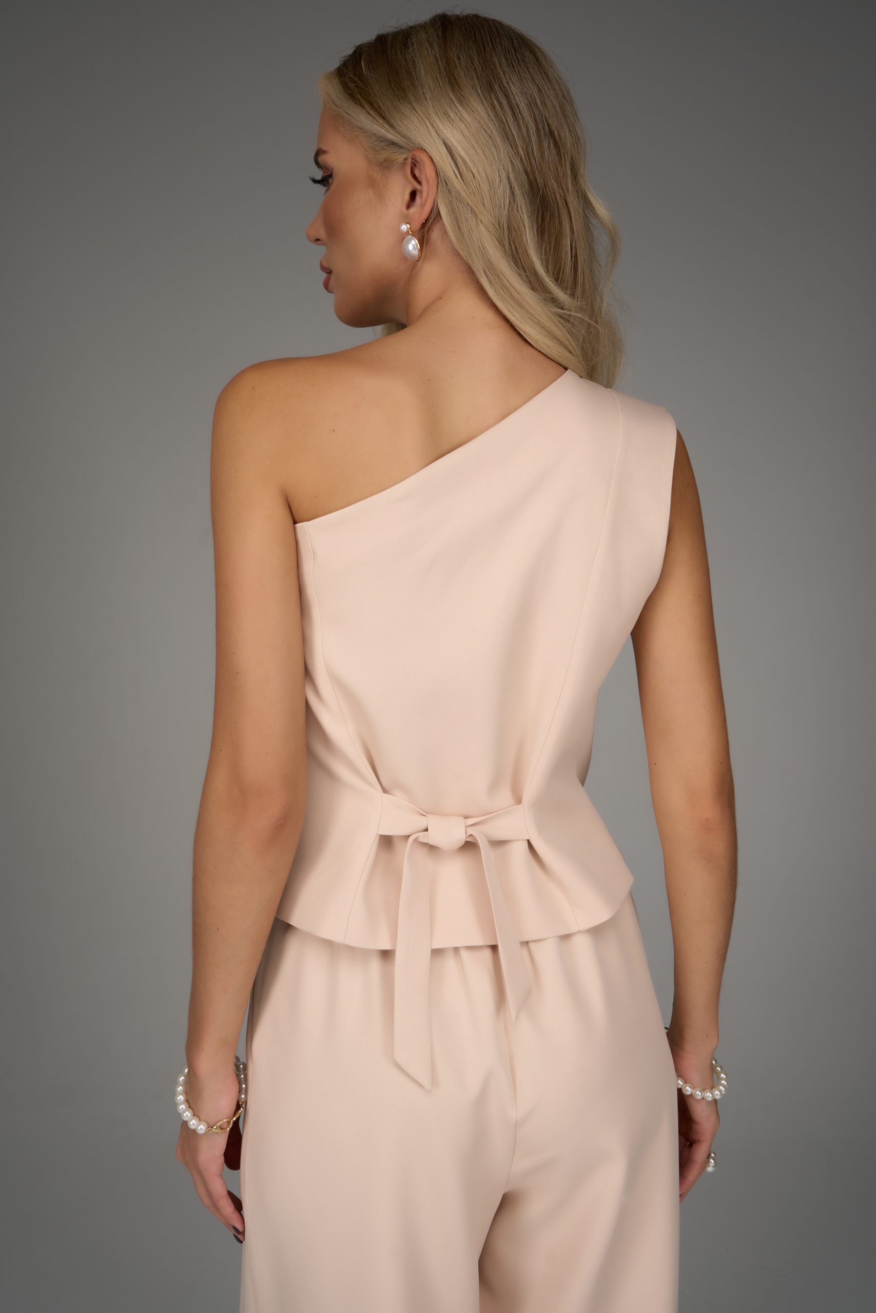 Жилет на одно плечо — смелый акцент коллекции. Нестандартный крой превращает классическую деталь гардероба в модное высказывание. Ассиметричная линия делает образ современным и запоминающимся, подчеркивая изящность фигуры и утончённый вкус.