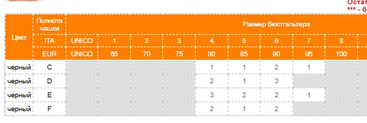 Цвет | Чашка | Размер бюстгальтера | |||||||||||||