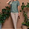 Блузка из трикотажного полотна с цельнокроеными рукавами и притачным поясом.