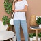 Блузка из текстильного полотна свободного силуэта с отделкой хлопковой трикотажной рибаной.