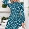 Платье из текстильного полотна трапецевидного силуэта.Горловина стойка с рюшей и застежкой сзади на петли и пуговицы..Пояс из основной ткани в комплекте.