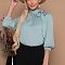 Блузка из текстильного полотна свободного силуэта с рукавами реглан,со сборкой от горловины и воротником стойка застегивающимся на потайную пуговицу и переходящим в шарф.