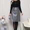 • Юбка трапецевидного силуэта из эко кожи с притачным поясом и застежка молния по спинке.