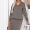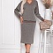 - Комплект из джемпера и юбки из трикотажного полотна. Джемпер свободного силуэта со спущенным плечом и контрастной отделкой трикотажной рибаной. Юбка карандаш с разрезом в среднем шве спинки и эластичной резиной по поясу.
