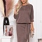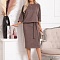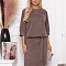 - Платье из трикотажного полотна под замшу.Лиф платья свободного силуэта,с цельнокроеными рукавами на манжете .Юбка прямая,слегка зауженная к низу,по спинке со шлицей.По талии платье зафиксировано на резину.Из верхней части платья формируется глубокий свободный напуск.Пояс из основной ткани в комплекте.
