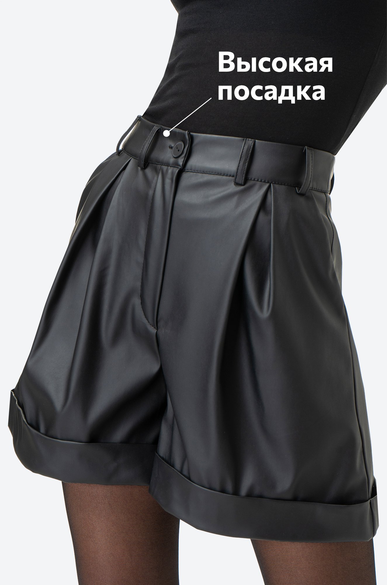 Гладкая искусственная кожа приятна к телу и выглядит эффектно. Классические шорты клеш сохраняют форму при каждом твоём движении.
